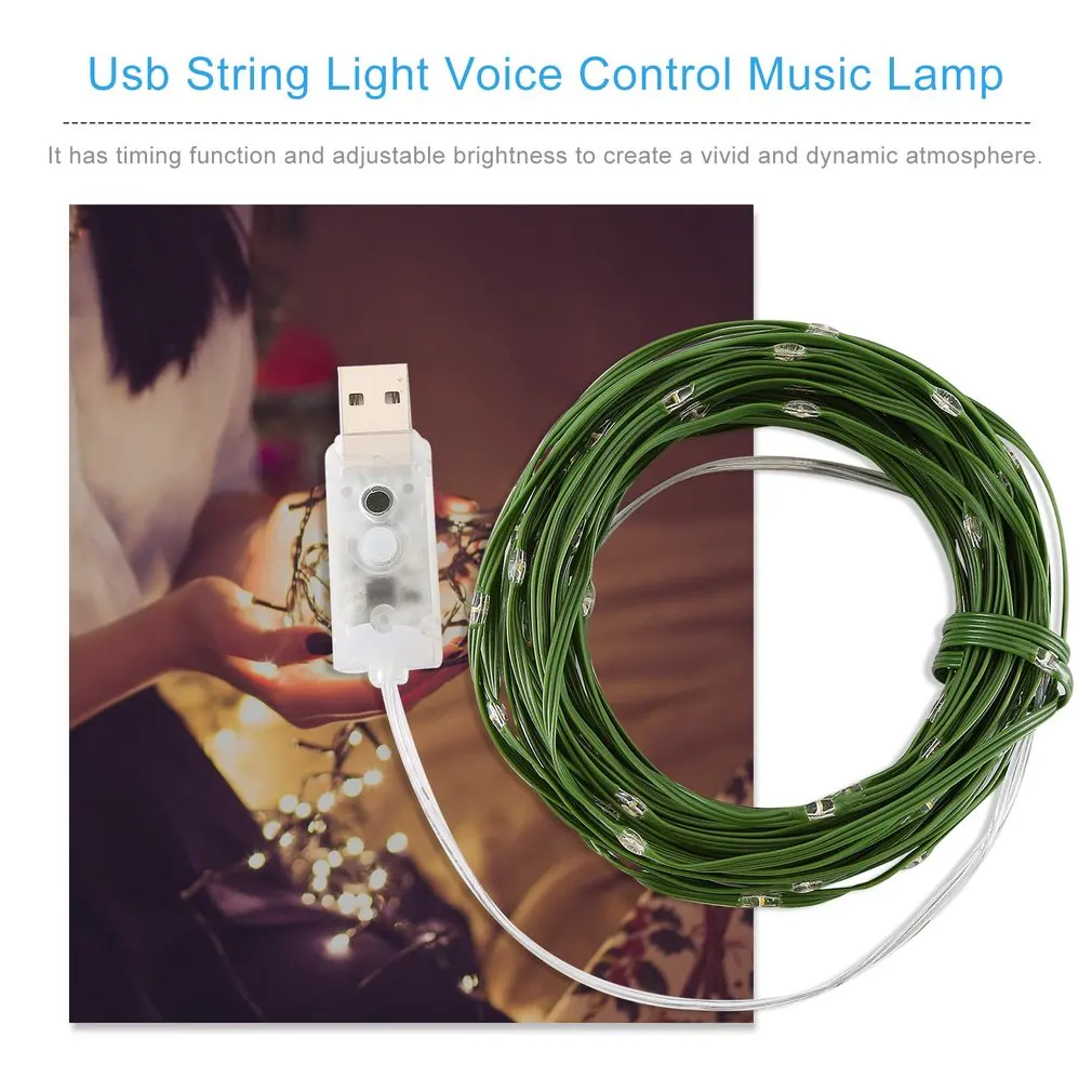 10M 100 LEDs USB Voice Control String Light Holiday Party Decor Music Lamp USB Socket String Lights