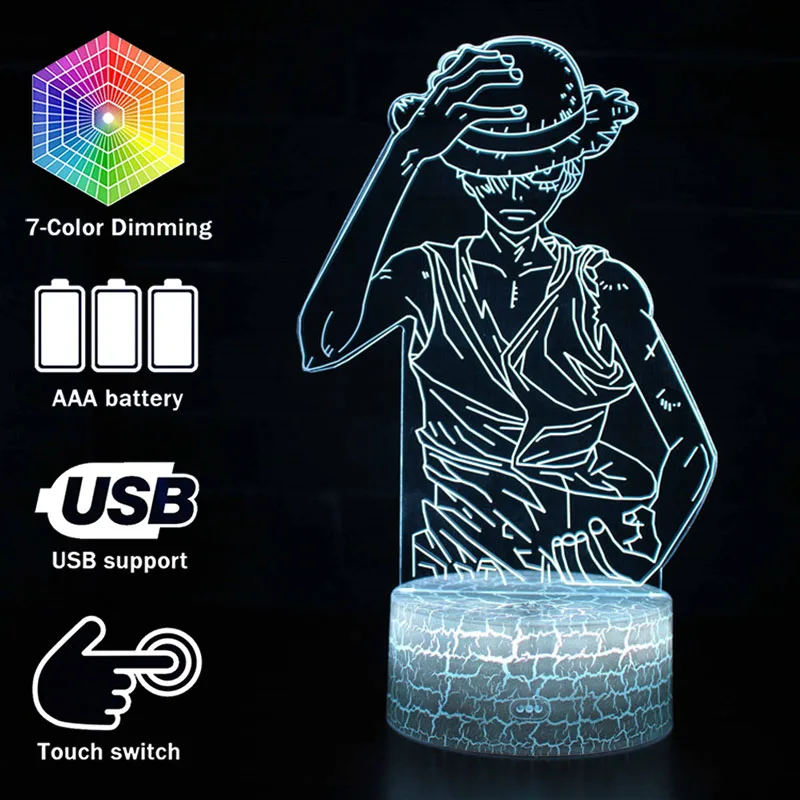 Novelty Lighting One Piece Anime 3D illusion LED Lamp Luffy Zoro Model Night LightsKids Room Decora